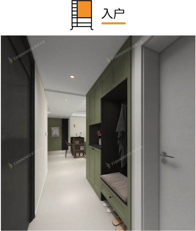 一踏入家门,首先映入眼帘的是玄关处悬空鞋柜。这款设计不仅实用,而且兼具美观。
