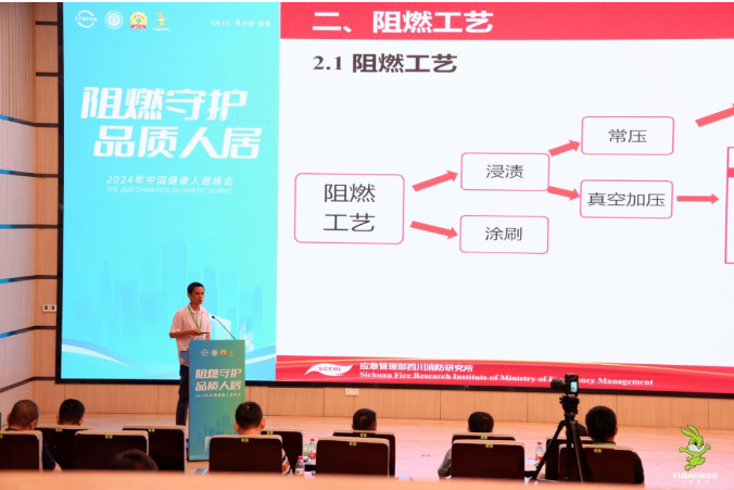 何世家副研究员在演讲中指出,阻燃木材的发展离不开阻燃剂种类、工艺、标准的不断完善。目前,市场上已经出现了多种不同类型的阻燃剂,它们通过不同的作用机制,实现了对木材的高效阻燃。同时,随着生产工艺的不断进步,阻燃木材的生产效率和质量也得到了显著提升。此外,国家和行业对阻燃木材的标准也在不断完善,为阻燃木材的规范生产和应用提供了有力保障。