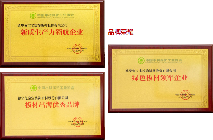 大会上,作为行业内的标杆企业,兔宝宝凭借在绿色环保、科技创新及全球化布局中的卓越表现,一举斩获“绿色板材领军企业”“新质生产力领航企业”“板材出海优秀品牌”三项殊荣。这一系列荣誉不仅是对兔宝宝多年来深耕行业的肯定,更是对其未来发展的期许。