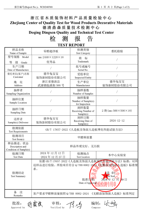 “耳听为虚,眼见为实”,我们提供了权威机构的专业检测报告,以真实数据说话。买板材认准兔宝宝零醛超净板,这不仅是选择一份权威认证的安心承诺,更是以硬核品质为家居环境提供长效健康保障。
