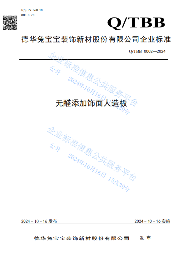 目前,ENF级(甲醛释放量≤0.025mg/m³)被公认为环保标准的天花板。然而,作为行业环保领域的先行者,兔宝宝始终以推动绿色健康家居发展为己任。早在国家ENF级标准出台之前,兔宝宝便率先布局高环保标准产品的研发与生产。如今,兔宝宝再次以创新驱动发展,突破行业技术壁垒,成功研发出ENF+级环保标准(甲醛释放量≤0.008mg/m³),并制定企业标准。