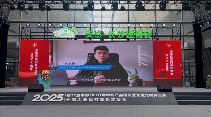 BG大游集团兔宝宝湖南销售公司总经理沈卫良为会议的顺利主办提前录制了视频祝贺,并作为代表上台领奖,发表获奖感言。沈总祝贺协会的顺利主办,表达了希望协会能够继续发挥桥梁纽带作用,加强行业交流与合作,推动行业创新发展,为湖南室内装饰行业发展提供更多有益经验的愿望。同时我们也将一如既往秉承“让家更好”的企业使命,以创新精神、专业能力和高度的社会责任感,与湖南省室内装饰协会及其他会员单位一起,为推动湖南室内装饰行业的发展积极贡献力量,助力湖南省室内装饰行业迈向更加辉煌的未来!