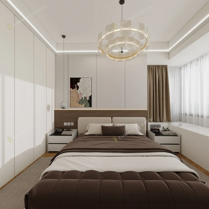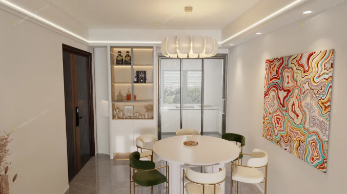 背景墙的彩色艺术画则为空间添了一抹灵动