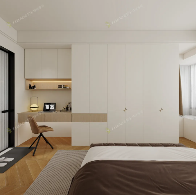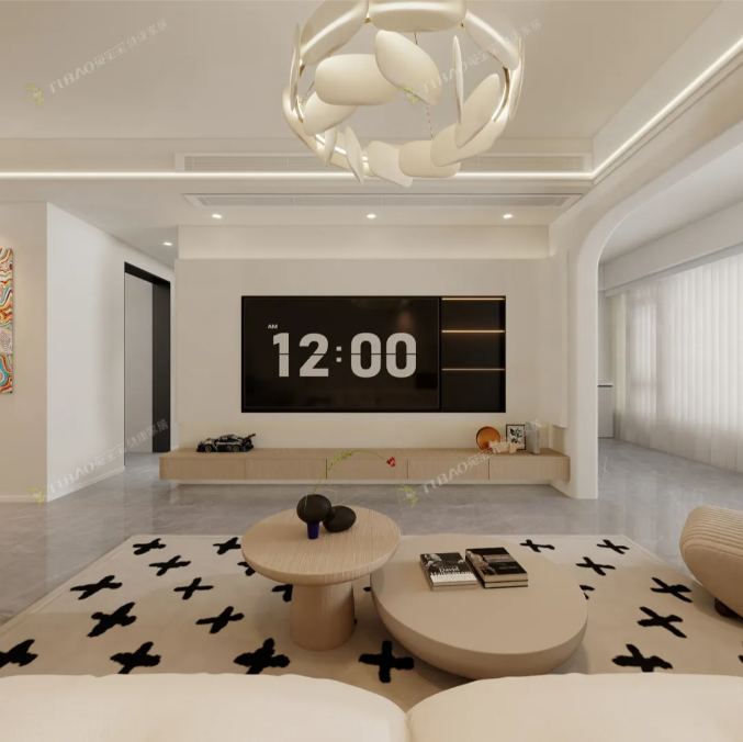 悬浮电视墙下的储物柜暗藏收纳智慧