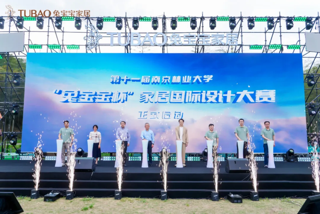 在众人的期待中,青山周平、吴智慧、徐伟、刘玮等嘉宾,以及兔宝宝领导詹先旭、丁涛、沈怡强、陆鸣亮共同上台,按下启动按钮,标志着第十一届“兔宝宝杯”设计大赛正式启动。