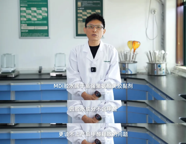 2、无醛MDI胶黏剂:MDI属于高强聚氨酯类胶黏剂,因胶水成分不含甲醛,与普通板材常用的脲醛胶、酚醛胶、三聚氰胺甲醛树脂胶等有本质的区别。