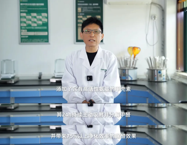 甲壳素除醛:含有高活性氨基的甲壳素与甲醛发生不可逆反应,24小时持续净化,效率达75%以上;