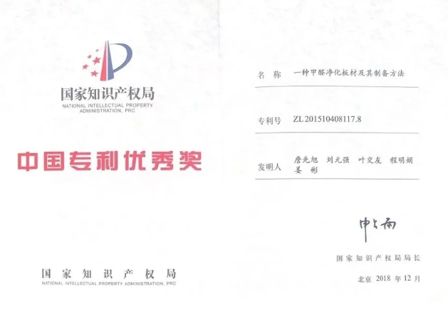 除醛抗菌技术已形成涵盖10余项国家专利的专利池,更有2项发明专利获中国专利优秀奖,已然是目前业内应用效果最佳、范围最广的独有专利技术。