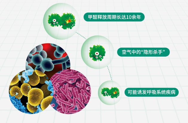细菌、病毒在生活中无处不在,一旦温湿度适宜,它们就会疯狂繁殖。为了应对这一挑战,兔宝宝除醛抗菌生态板中的纳米银和纳米硅发挥了重要作用。它们通过改变细菌(如大肠杆菌、金黄色葡萄球菌等)的DNA结构,对细菌进行杀灭,灭菌率高达99%以上,达到了强抗细菌级的效果。