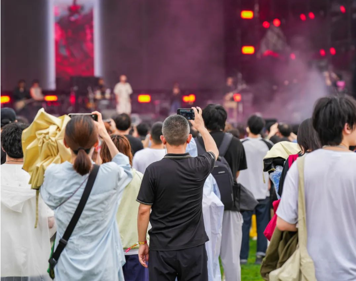 现场,音乐节的舞台星光熠熠,汇聚了摇滚、电子、民谣、说唱等多种音乐风格。痛仰、舌头、声音碎片……各路神仙乐队火力全开,三大舞台音浪接力输出。尽管6月14日的天空飘着雨,但现场气氛依然热烈,乐迷们撑着伞、穿着雨衣,尽情舞动,展现出对音乐的热爱与执着,这一刻,“勇敢的人先享受世界”这句话得到了最完美的诠释!