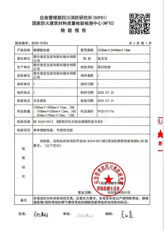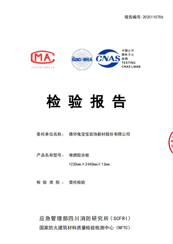 此次兔宝宝难燃板双项权威检测的优异表现,并非偶然,而是品牌长期深耕产品质量与技术创新的必然结果。作为板材全国销量第一的品牌,兔宝宝始终以消费者需求为核心,不断突破技术壁垒,致力于推出更多兼具安全性能与环保优势的产品。未来,兔宝宝将继续为各类建筑项目提供优质材料选择,积极推动建材行业向更高质量、更绿色环保的方向迈进,持续引领行业健康发展。