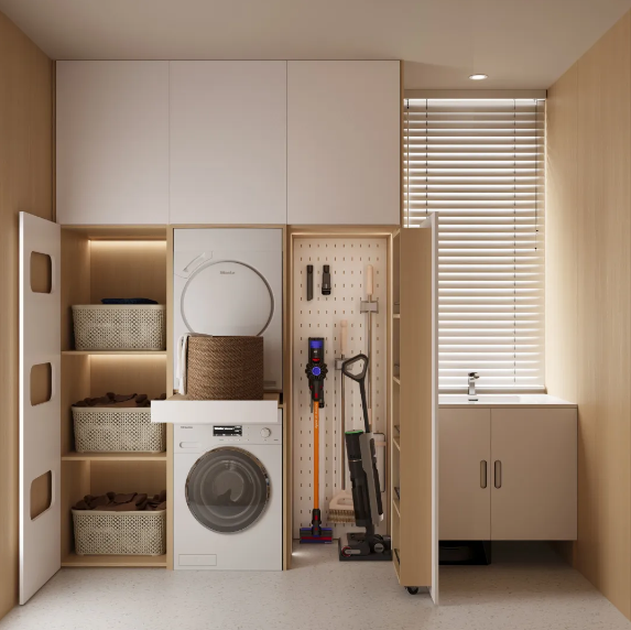拒绝“为设计而设计”的鸡肋感,兔宝宝全屋定制从生活场景出发优化空间秩序和收纳细节:
