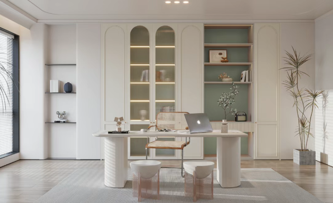 书房是阅读、办公的 “精神空间”,书柜要装满,生活才美满。几十上百本厚重书籍,对板材的承重能力和稳定性有着极高要求。兔宝宝木素植物胶板材强韧不操心,如顺纹静曲强度通常高出国家标准(>22MPa@18mm厚)的50%,展现出强劲的抗弯、抗压与抗变形能力,长期使用不变形。兔宝宝木素植物胶板材,是托举美好生活的实力担当。
