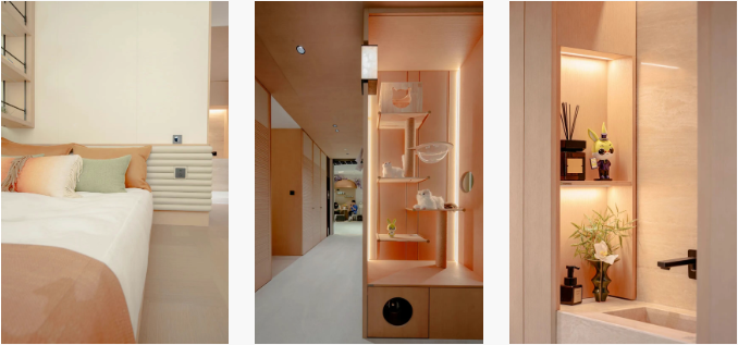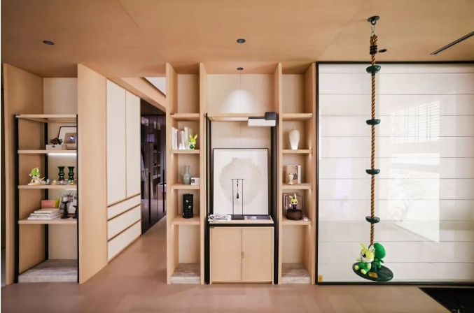 本次展会,兔宝宝不仅仅是参与者,更是“好房子”理念的坚定践行者。自品牌创立以来,兔宝宝始终秉持着“让家更好”的企业使命,坚信真正的好房子,源于对材料的严格把控、对设计的匠心钻研。全屋采用板木结合工艺,其中柜体,精选芯选系列—桉芯板,在ENF级极致环保标准之上,更赋予其除醛抗菌的环保黑科技,以静默守护之势,为家人构筑起第一道健康屏障;而柜门,甄选橡木直纹天然木皮,覆以温润如玉的环保水性漆,将木纹的天然之美与现代技艺融为一体。此外,兔宝宝还融入适老、适幼及无障碍通行等细节,无论是小户型的空间扩容,还是大户型的风格统一,都能通过定制化方案,让家居空间与生活习惯完美适配,真正实现健康、智能、可持续的理想人居。