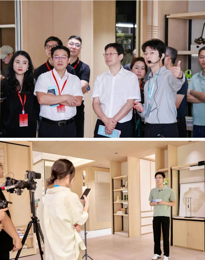 ▲潮新闻、杭州电视台等多家媒体采访了兔宝宝品牌建设中心副总监闻国涛
