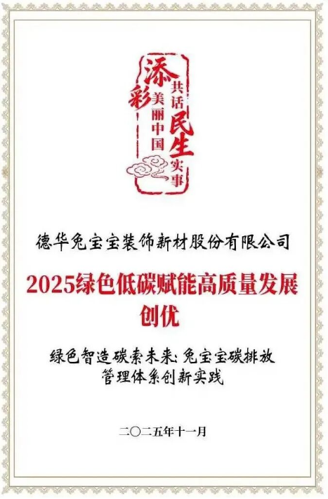 双项荣誉,是对兔宝宝过去在绿色道路上不懈探索的肯定,更是对未来持续引领的期许。兔宝宝将继续以创新为驱动,以责任为基石,在赋能行业绿色低碳转型、推动高质量发展的征程中,发挥更为核心的引领作用。