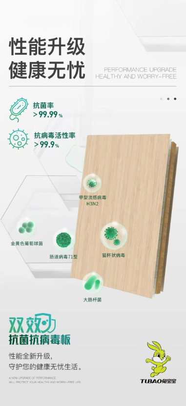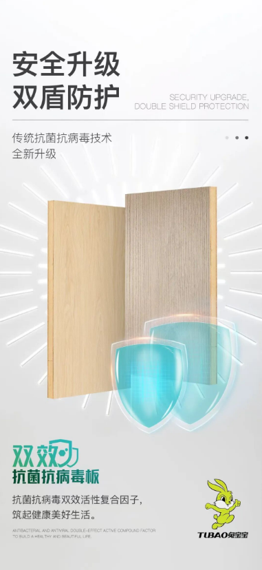 随着冬季来临,甲型流感进入高发期,科学防治成为关键。除了佩戴口罩、勤洗手等个人防护,家居环境中的健康隐患也不容忽视,病毒细菌可能藏匿于衣柜、橱柜、床头柜等角落。为此,筑牢家居环境防护线尤为重要。兔宝宝双效抗菌抗病毒板材,从源头抑制病毒与细菌的滋生与传播,为家居健康筑起一道坚实屏障,让您即使在流感高发季节也能安心生活。