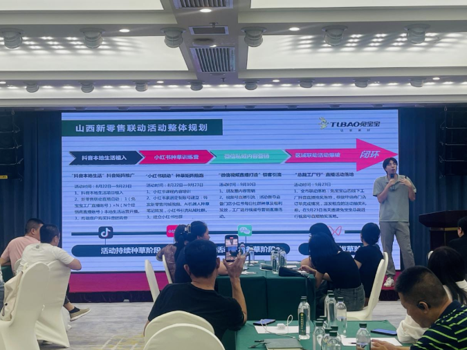 会上,兔宝宝杭州多赢渠道运营部经理俞建杰为大家分享抖音本地生活玩法及小红书种草课程培训,并现场教学。随即将开启新零售陪跑计划,打造山西区域新零售门店线上运营矩阵,抖音本地生活(团购)和小红书社区运营将吸引更多用户参与,有助于提高线下专卖店转单率,从而提升终端门店业绩。