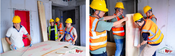 整个公检活动以公开、透明的形式展开,公检团队对工地现场的兔宝宝难燃胶合板进行了严格的抽样、裁样、贴标、封样等程序,确保每一环节规范且严谨。并将这些封样产品被送往国家权威检测机构,进行燃烧性能与环保性能的全面检测,进一步验证其卓越品质。