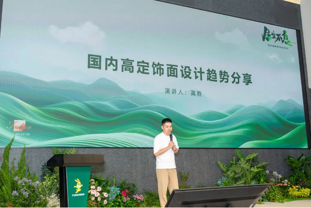 随着消费方式升级、大众审美意识提升,家装风格也迈入了多样化、个性化时代,除了居住功能,人们更关注生活空间的健康属性与个性化审美需求。发布会上,两位杰出的设计师杨志伟和高胜分别带来了主题为《国际流行饰材饰面及设计风格趋势》和《国内高定饰面应用设计趋势分享》的精彩演讲。杨志伟深入剖析了国际流行饰材饰面及设计风格的趋势,引领观众领略全球设计前沿的魅力。同时,他表示,未来,环保、智能材料将会成为主流,个性化定制需求增长;简约、复古风格也将持续流行,跨界融合成新趋势;新兴市场潜力巨大,行业竞争日趋激烈。