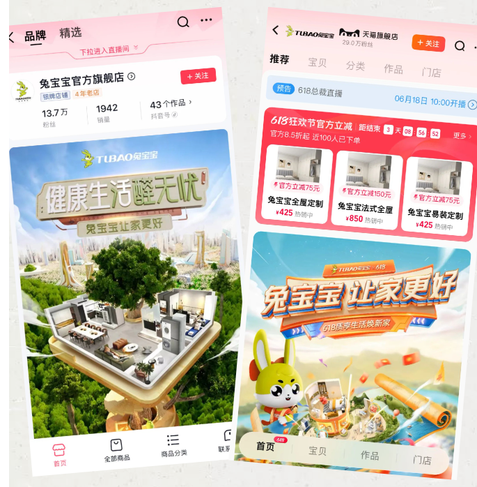 此次兔宝宝将在抖音兔宝宝旗舰店、兔宝宝板材定制+和天猫兔宝宝旗舰店同步开启直播。在本次直播中,兔宝宝将采用丰富多元的内容和多样化的场景,更好地为消费者呈现兔宝宝产品的独特魅力,让大家更好地了解兔宝宝。我们特别邀请了参与“爆改计划”的业主嘉宾,他们将分享自己的空间改造心得和选择兔宝宝的真实体验,让观众更加直观地感受到产品的实用性和品质。此外,我们还将邀请了三位风格各异的兔宝宝家装设计师,他们将深入探讨当下年轻人所追求的生活态度和生活方式,并为大家详细解析当前流行的定制风格。