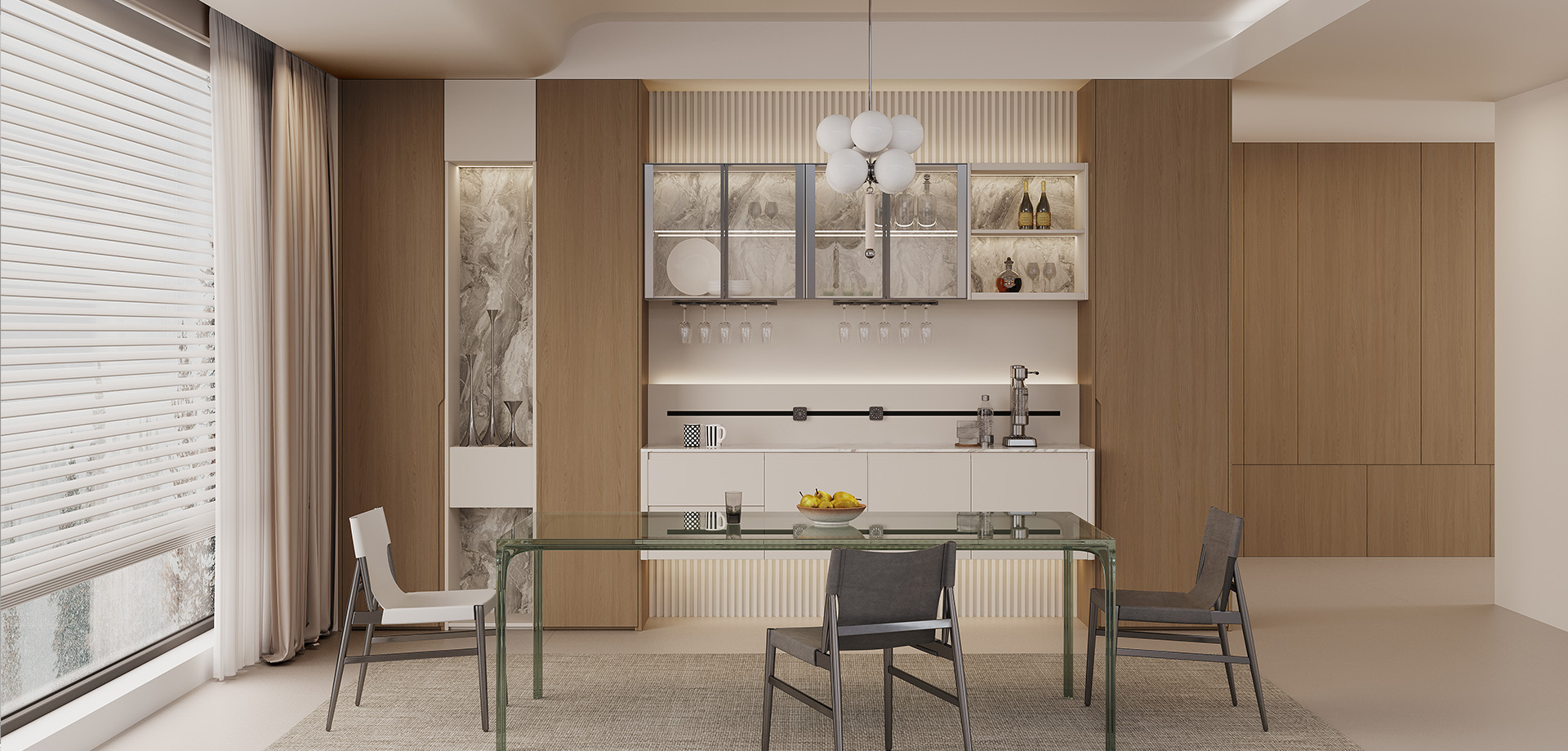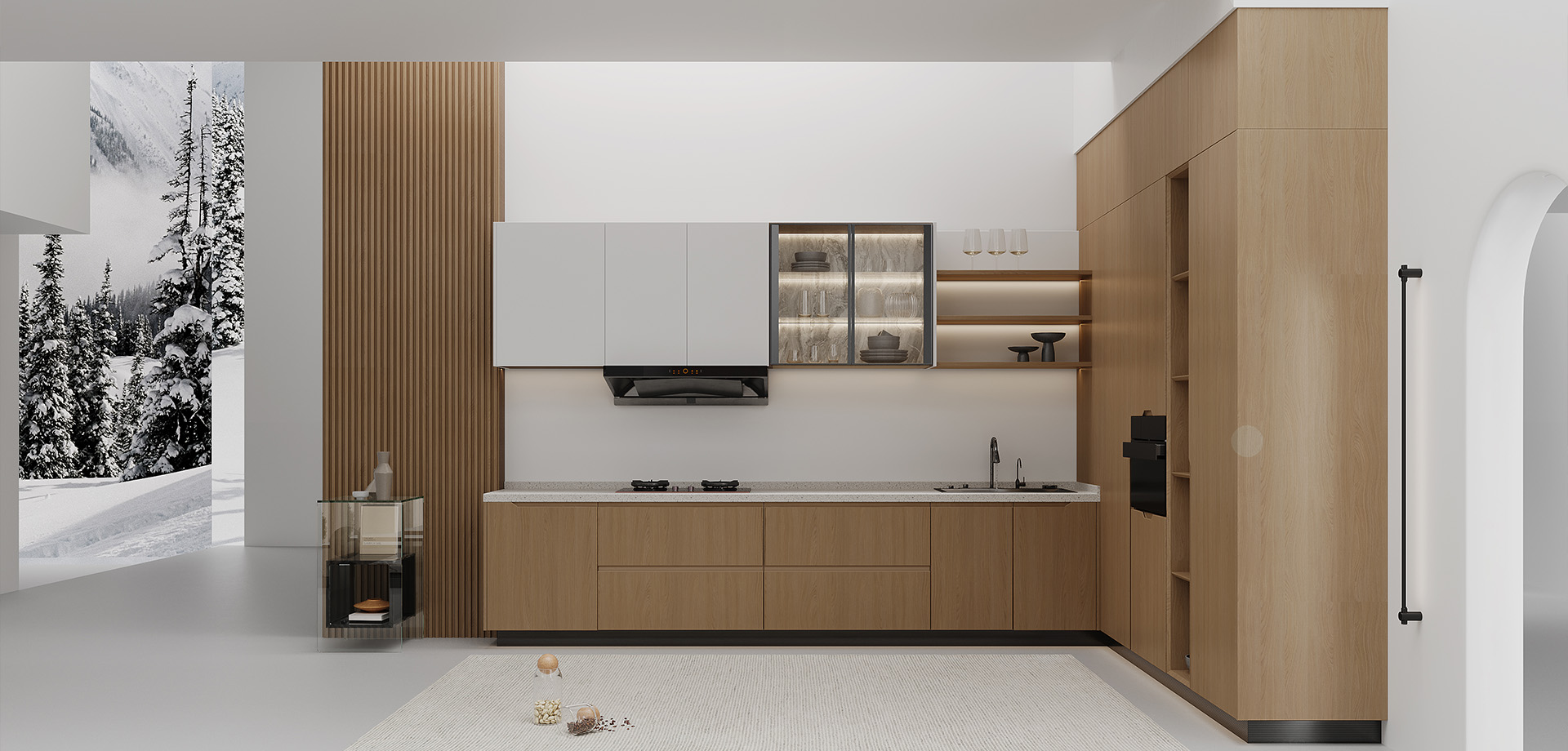 吊柜做奶白色,搭配玻璃门层次分明简约不单调