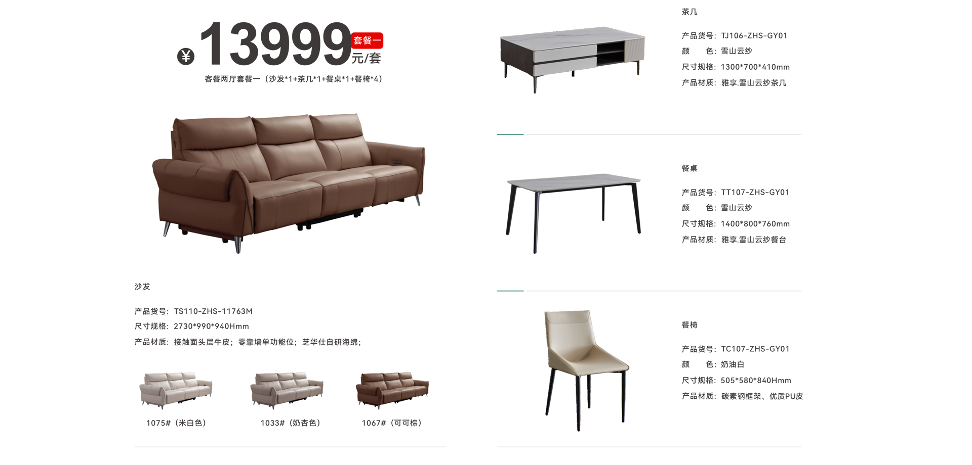 沙发*1+茶几*1+餐桌*1+餐椅*4