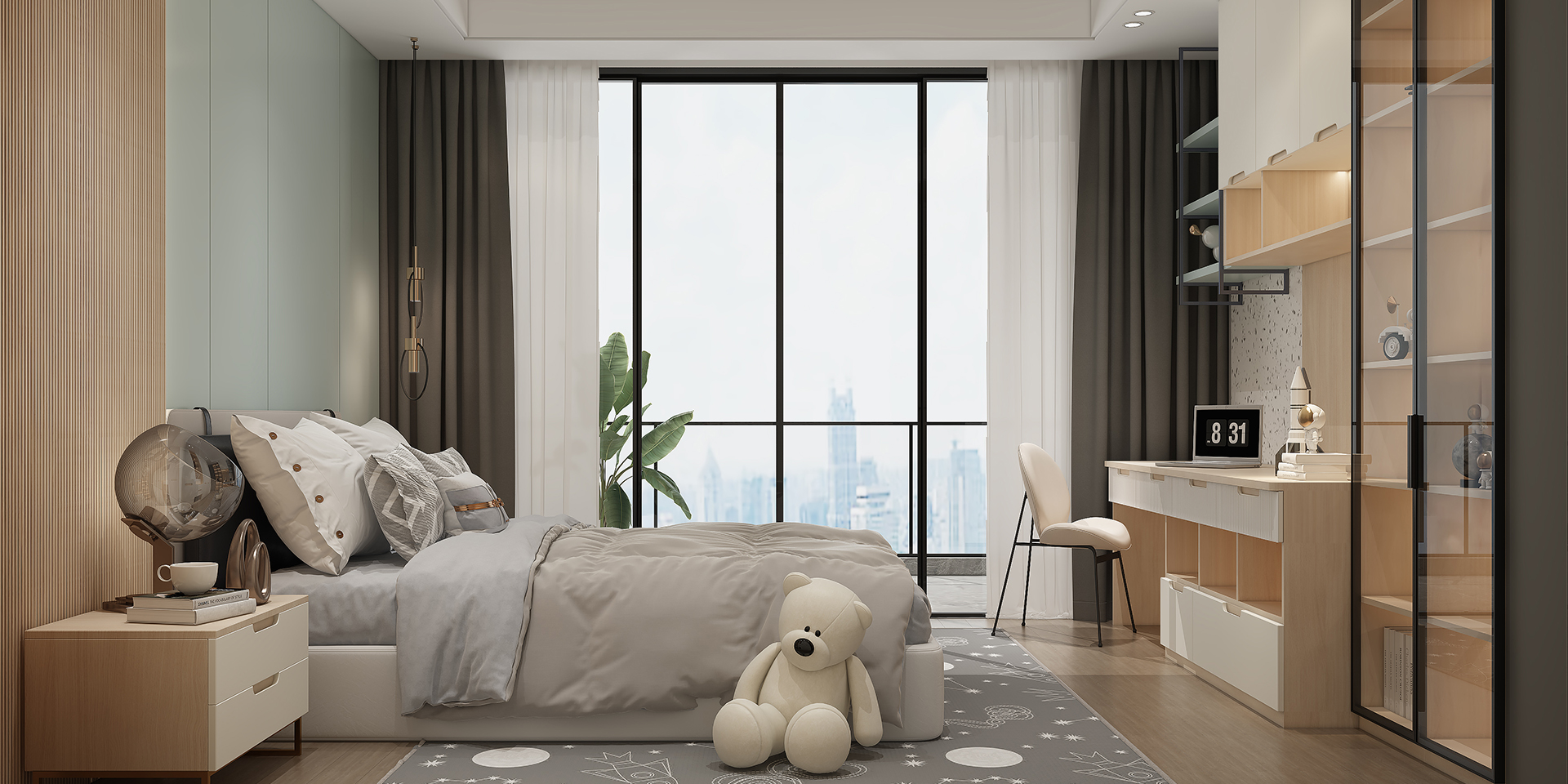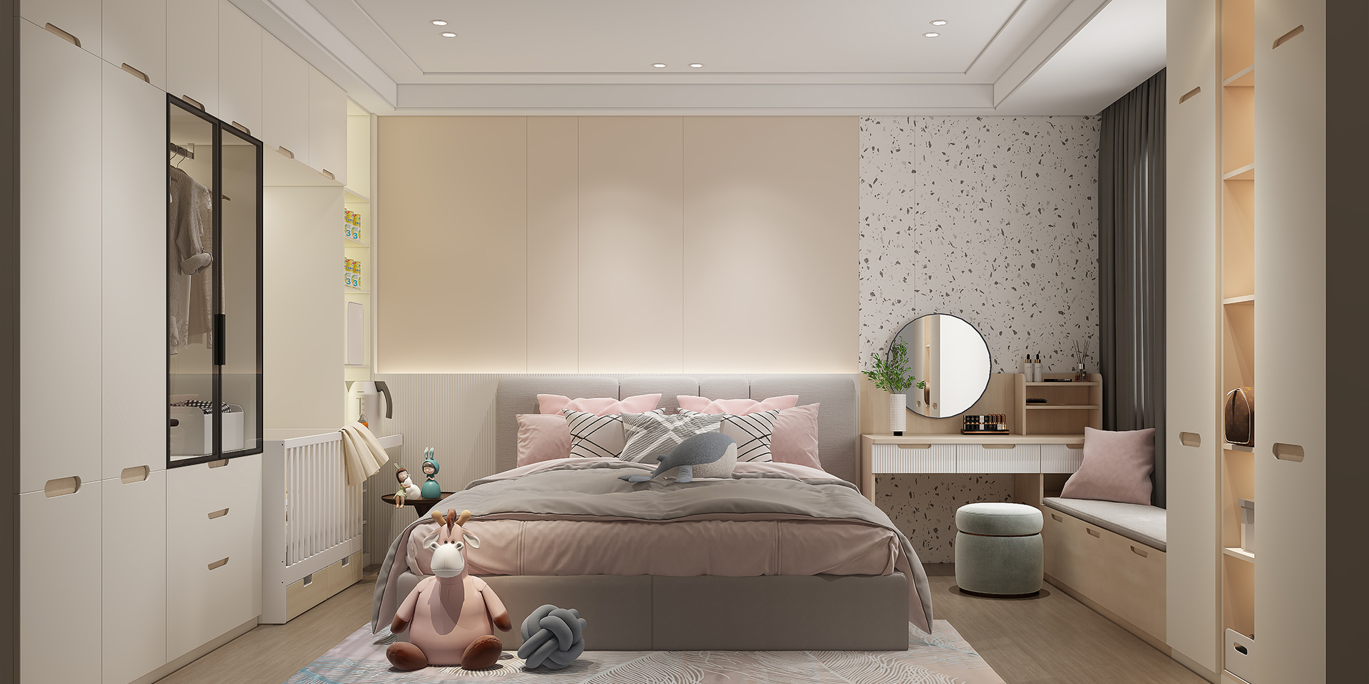 圆弧板的应用,让儿童房空间更加灵动活泼,让空间充满童趣。