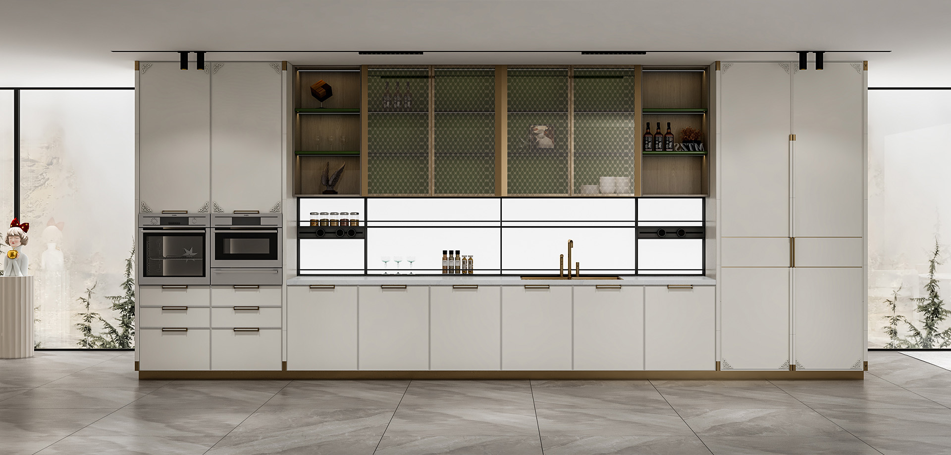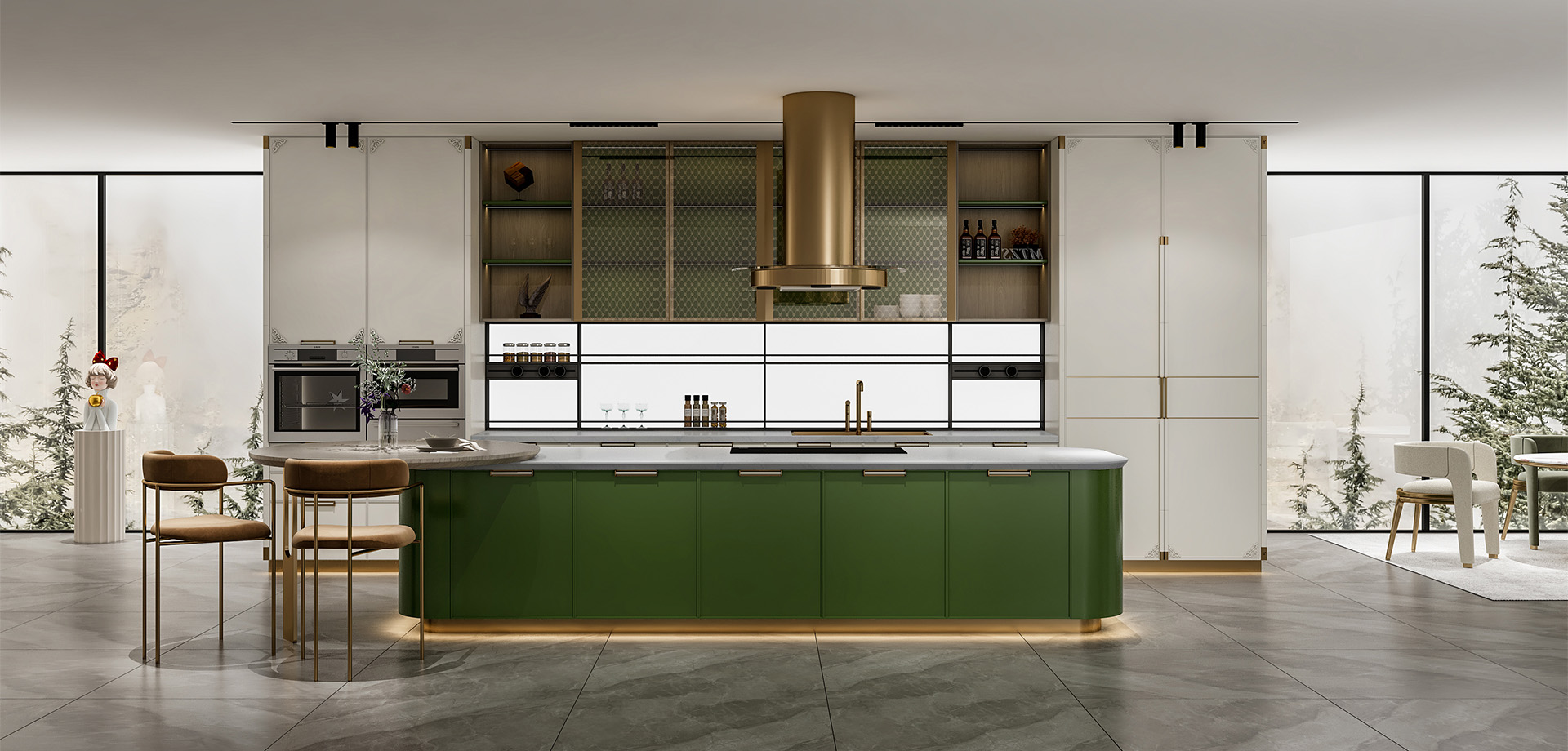 开放式厨房+岛台+玻璃吊柜的经典搭配