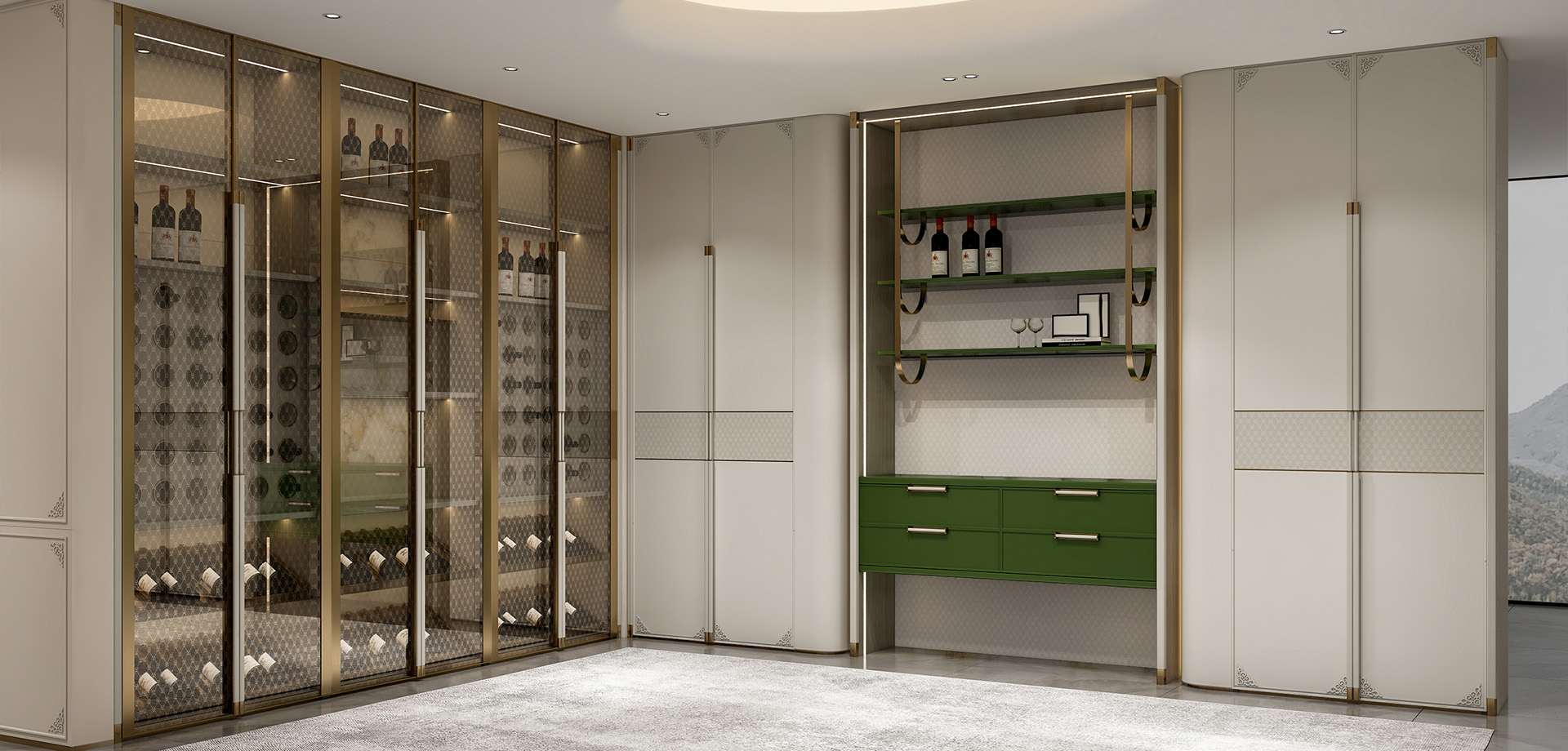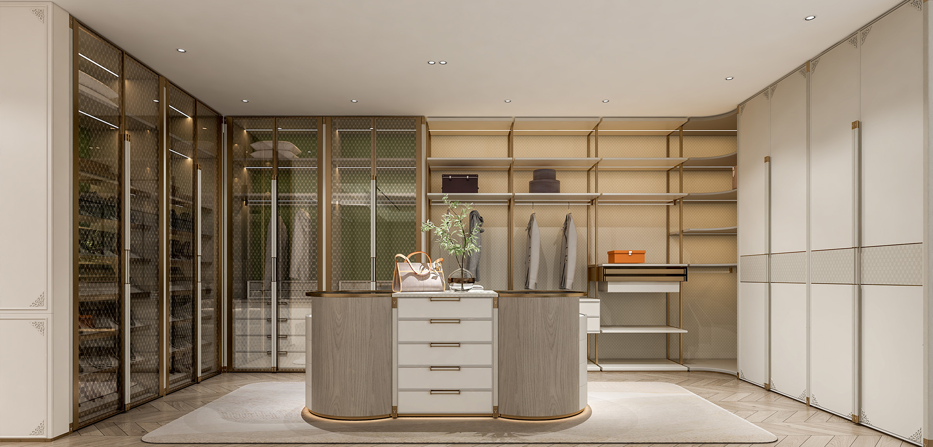 舍弃繁复的外观造型,突出中轴线的对称,低调淡雅的色彩结合金属材质塑造出来的空间感体现法式情怀的浪漫。