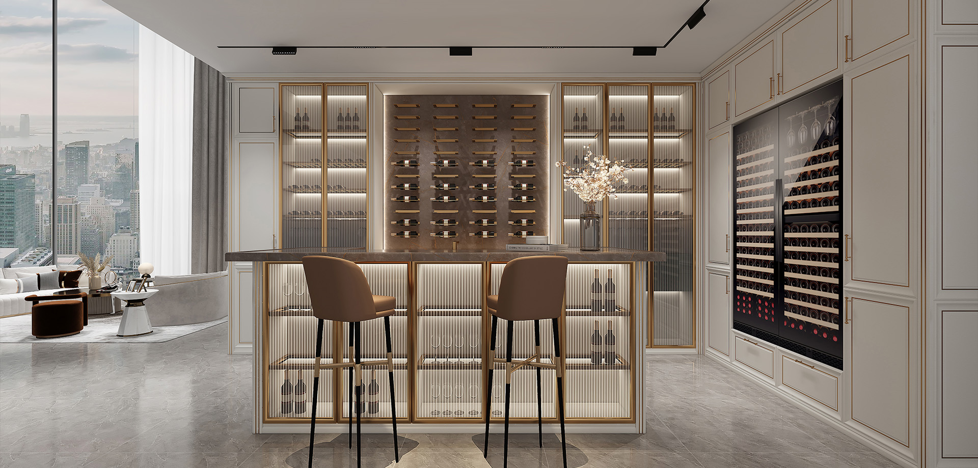 中岛具备品酒、休闲交互功能,还具备洗涤操作功能。