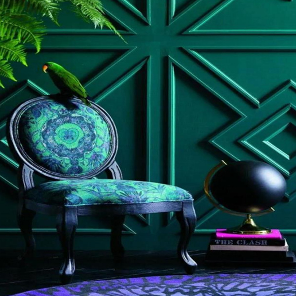 与之不同的是加入金属条和孔雀绿的现代元素,