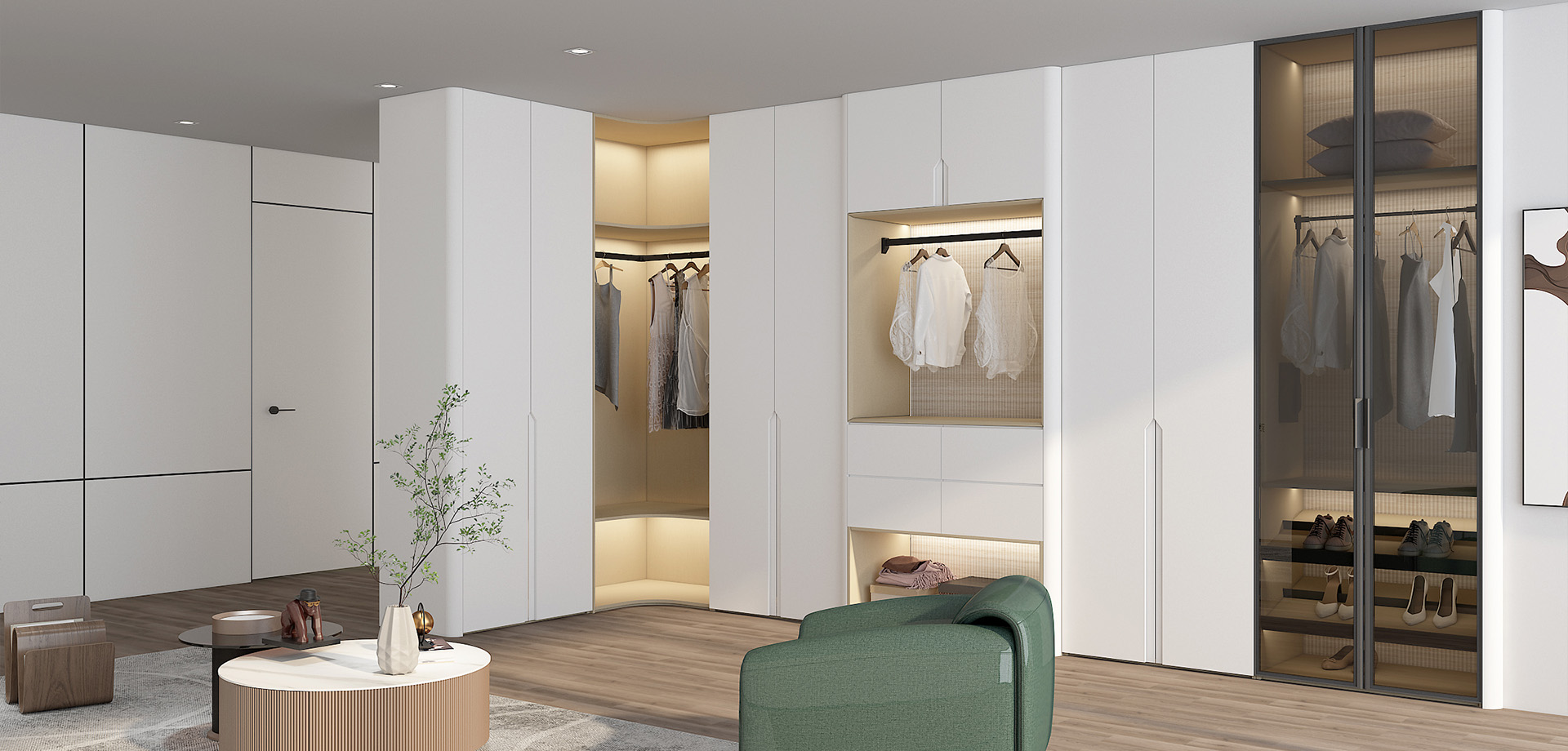 2.7米高度的衣柜增加智能升降衣杆,解决了衣柜过高问题。