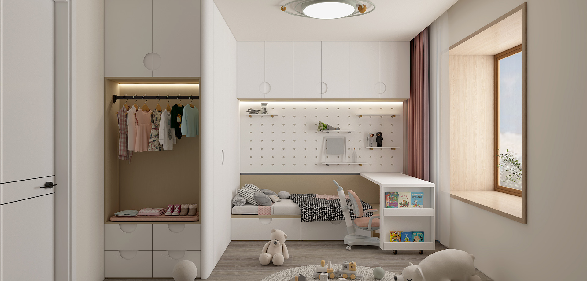 儿童房采用L型布局的设计,集睡眠、学习、收纳于一体。