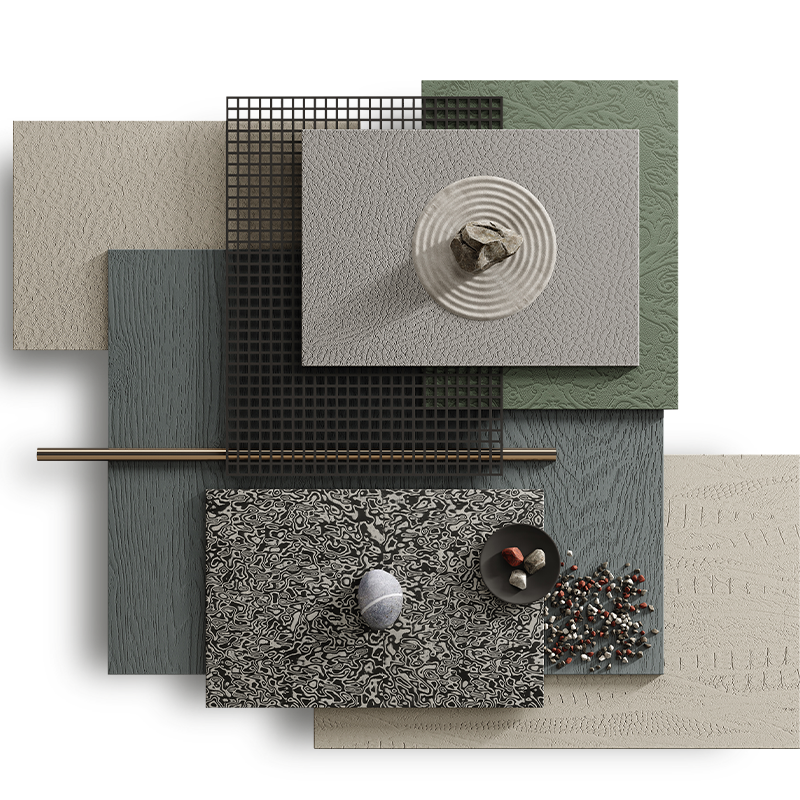 兔宝宝HCC寓岩系列岩饰板,特别的专利“岩饰面”层,天然无机属性,一板多用,可满足更严苛的高标准工程。通过抛光、平砂、数码、雕刻、拉丝、浮雕、拼花等面层处理工艺,可任意塑造变化万千的色彩、肌理与图形,为更多空间应用场景呈现更具新意的装饰艺术效果。